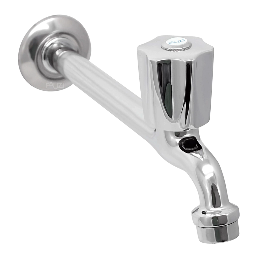 Torneira cromada simples com 22 cm de comprimento de fácil instalação 1/2" com bucha de redução 3/4" para instalação na parede de cozinhas, áreas gourmet ou uso geral.