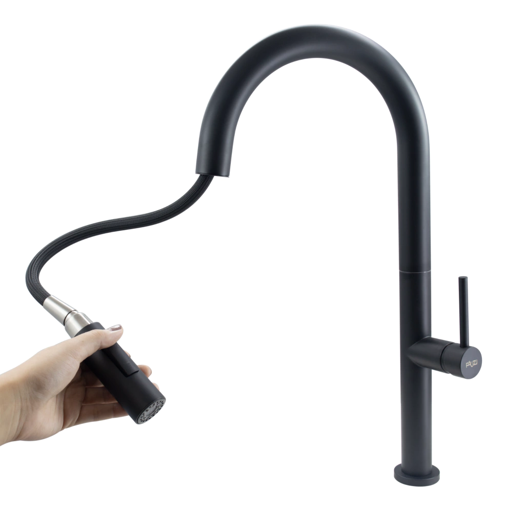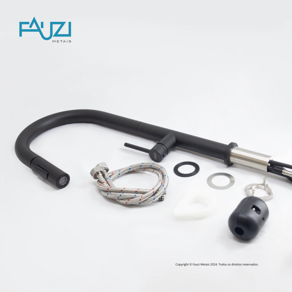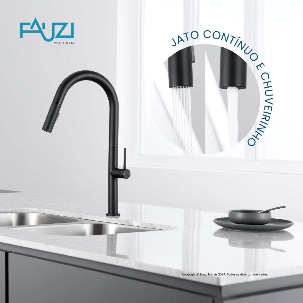 Monocomando Cozinha Aço Inox Preto Fosco Bica Pull Out Jato Duplo |